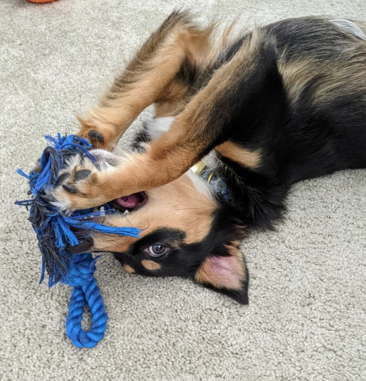 I mastered the art of working remotely almost two years ago when I started a new remote job, but working remotely with a puppy is entirely different. It requires patience and love, but it is very doable. I'm fortunate to love what I do so much that it doesn't ever feel like work, so I view my day as splitting it between my two loves: writing and Arlo Moon.