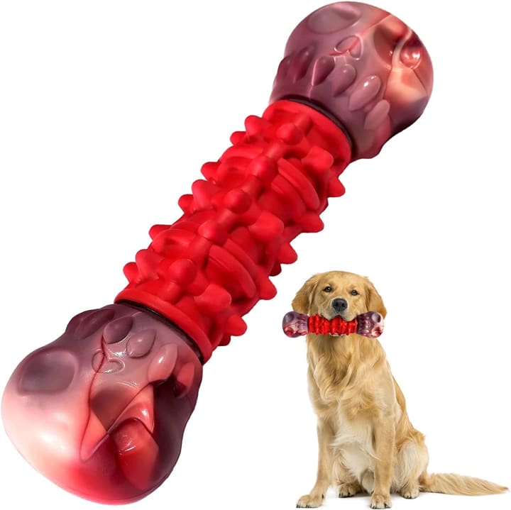 3.The Indestructible Dog Chew Toy is a must-have for any dog owner who is tired of constantly replacing chewed up toys. Made of 100% Natural Rubber and Durable Food grade Nylon Material, this chew toy is designed to last even for the toughest chewers. Its unique bones shape design and delicious milk flavor make it a favorite among dogs, while the puzzle toy helps them develop healthy chewing habits and satisfies their natural urge to chew.