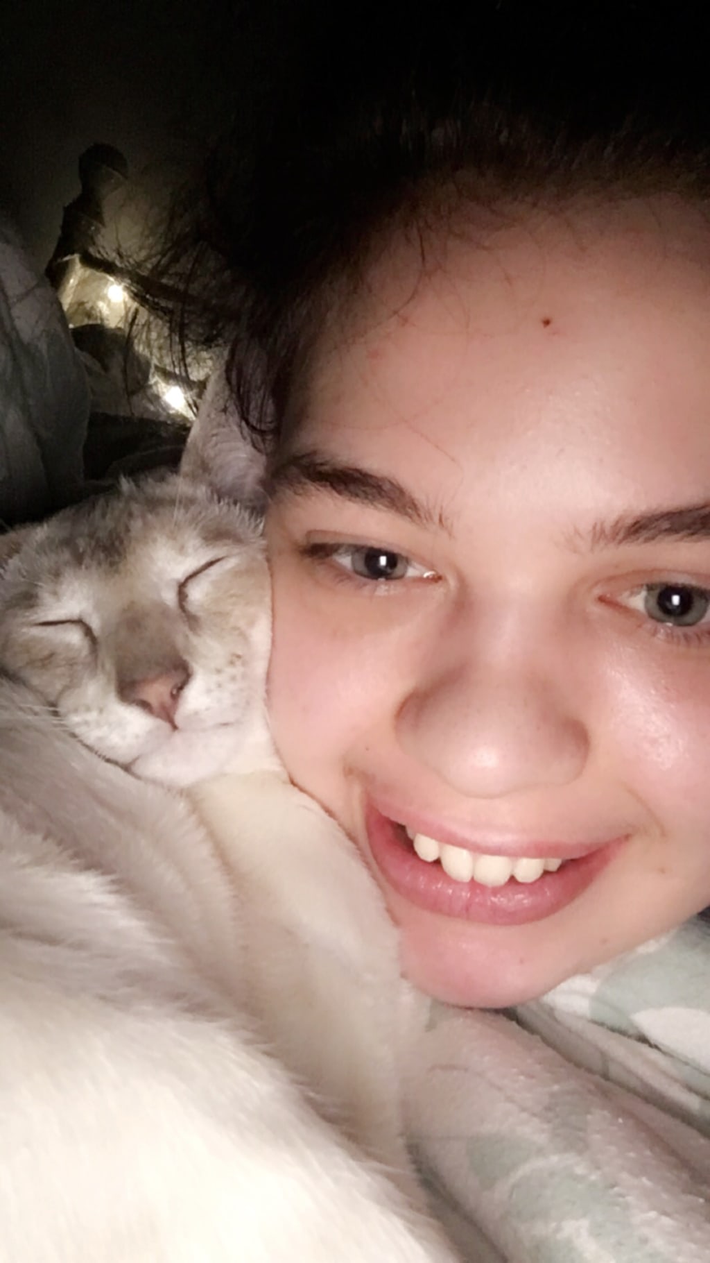 Let me tell you a little bit about her, she's my favourite person, Mimi has Borderline Personality Disorder which means she runs on emotions all the time which is the same as me, as well as that she is disabled but these things are what make her perfect in my eyes. She incourages me to be the best I can and when she needs a break we nap together mostly for the whole day, you see she's not like other beings, she's a cat like me.