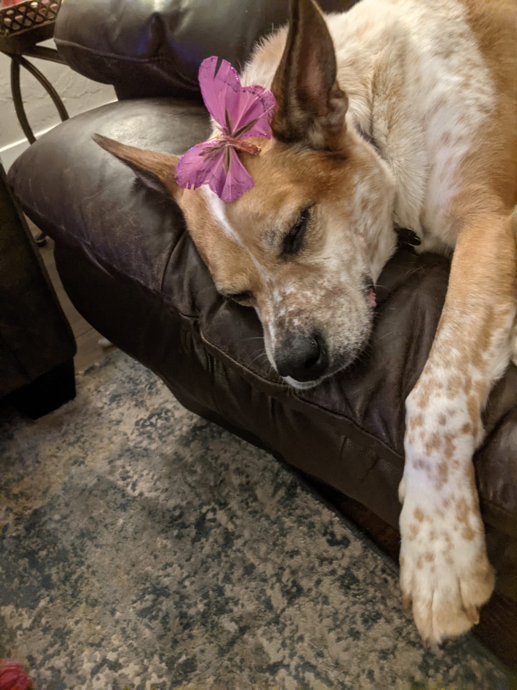 She was dreaming. Or maybe reliving a memory she was less than keen to have, but has become a part of her at this point. Tina is a 45 pound white and brown Australian Cattle dog-mix.