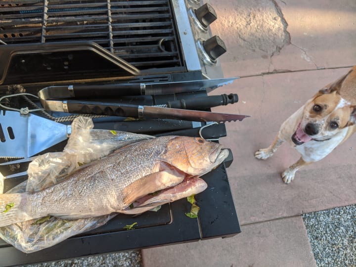 Whenever I grill fish, Tina is at my side. I may drop a piece. Sneak her some skin. For sure I’d give her a bit of burned fish. She was right. I always gave her some.