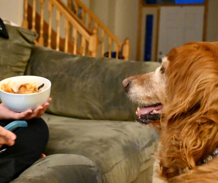 It is important to remember that your dog or cat isn't begging for food. Instead, he or she is begging for your attention. Instead of reaching for a treat, you could easily get down on his or her level and pet your dog or cat.