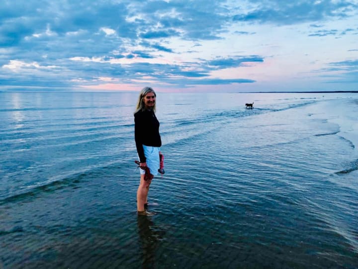 And I was right: I am chief treat-and-bone purchaser, vet-appointment monitor, poop-bag supplier, and tennis-ball provider, and, of course, I do the longest walks. But am I bothered? Absolutely not because our early morning ritual has become something so special that I am truly grateful that Roxy came into our lives. Now, don't get me wrong, living on the edge of our small town and pretty close to the beach, I was no stranger to a stroll on the sand, but, since I've had a companion, the beach has taken on a whole new meaning, as even though we take off on the same 3 mile circuit every morning, through the fields and then onto the beach, like the weather and the sky, no walk is ever the same. Every day the landscape has offered up something new, either through the gentle life cycles of the plants, the wildlife, (of which I have to be far more observant than speed merchant Roxy), or the natural, ever-changing, seaweedy debris on the beach. Walking the same route every day isn't boring, because, if you allow yourself to leave your headphones at home, free up all your senses, and really observe what's going on around you, it becomes something of a meditation and an observation of everything that is wonderful about the planet we inhabit—many a plot twist for my latest book Trust Me. I'm a personal trainer that has worked out during this sensory reverie, and, thankfully, Roxy doesn't think I'm mad when I talk to myself. At least I hope she doesn't.