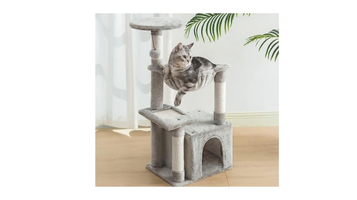 Safety is a top priority with this cat tree. Supported by sturdy particleboard and a reinforced base, it provides a stable and secure structure for up to three cats, each weighing a maximum of 15.4 pounds, to play and explore. Additionally, the cat tree comes with an anti-tip kit, ensuring that it remains securely in place, even during vigorous play sessions.