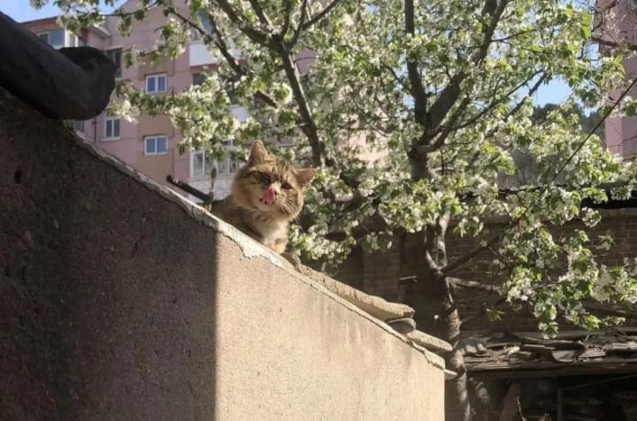 But it's a stray, and Huihui, like other stray cats, can't escape disease. Severe stomatitis sent him to the hospital again, and he survived with the relay care and company of his neighbors.