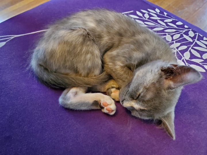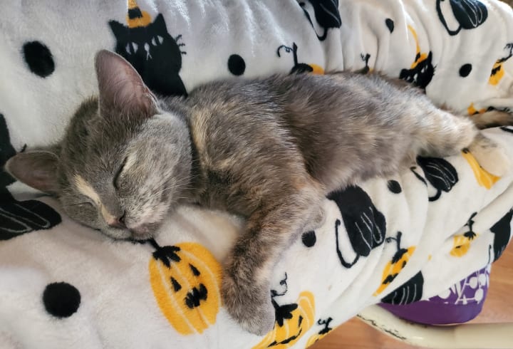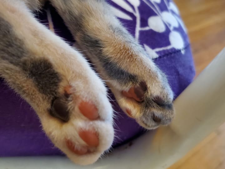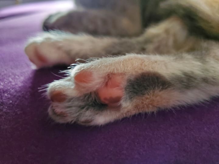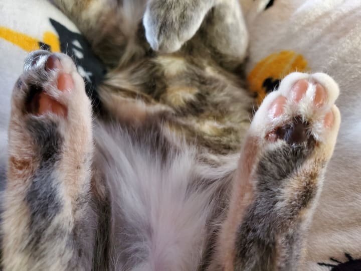 She’s grown so much over these two months; Tsuki’s probably about five pounds now, and she just recently lost her first baby tooth. As she’s grown, so has our love for her and the healing of our hearts. After months of not having a furry companion awaiting our return, we have a loving kitten that eagerly greets us again. There’s never a dull moment with Tsuki. Even bedtime isn’t safe from her nutty reign; she loves racing from room to room, under beds, into closets, on top of dressers, and then trying to climb doors, which usually ends with her locking herself into the room. She’s such a nutty goofball. She soothes our soul with unconditional love, kitty snuggles, purrs, and laughter. She knew we needed her, and she ensured that she made her way to our home. Each furry companion is irreplaceable, and she made sure that she was so uniquely herself there was no comparison to our previous kitty. You couldn’t even possibly mistake them for each other. She keeps things lively with her loud personality; she deserves the Empawyee of the month award now and every month. Tsuki embodies so many life lessons. She arrived when we needed her most and ensures that we keep in touch with the fun side of life; she refuses to let us lose touch with our inner child and laughter. She’s our irreplaceable moon princess with the most adorable toes!
