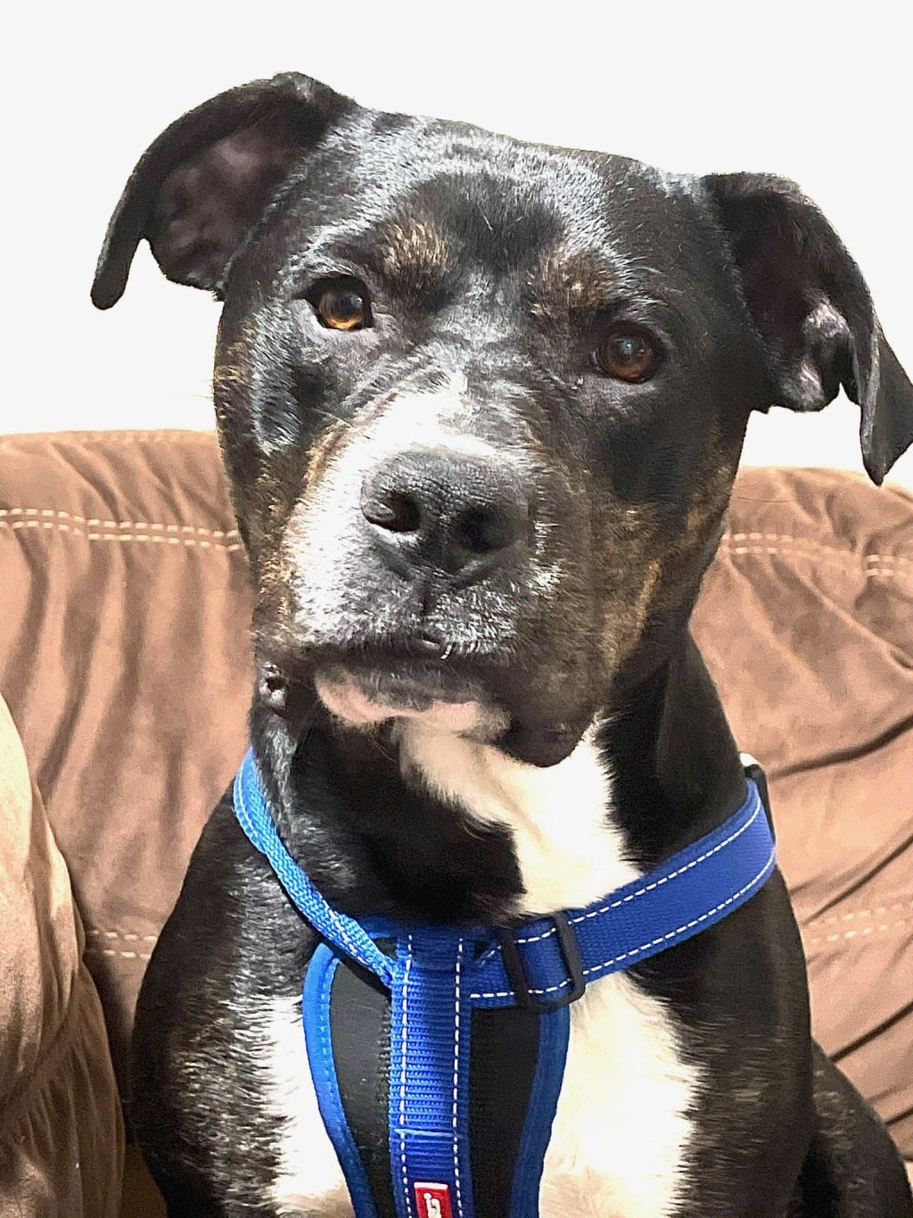 I walked to the first kennel where I saw a cute puppy filled with excitement and wiggles. I knelt down and was greeted with licks and puppy breath. As adorable as he was, I moved on to the next kennel. Here stood a brown and brindled medium sized dog. When I walked up to the gate He stood up on the gate and anxiously awaited my pets. As soon as I touched his head, he grabbed my arm with his paws in a hug-like manner, and he hasn’t let go since.
