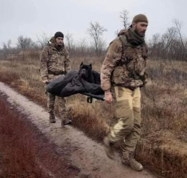 Vasya the dog served in the reconnaissance of the marines. Once at the front near the enemy's positions, he became entangled in a wire and fell into a trap. The poor dog bit off his paw and returned to Ukrainian troops. Therefore, Vasya escaped from captivity.