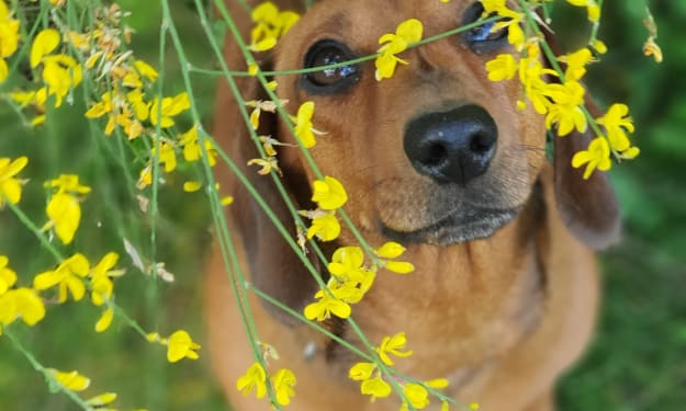 "Don't be afraid," Daisy the dachshund assured him. "Look around, see for yourself."