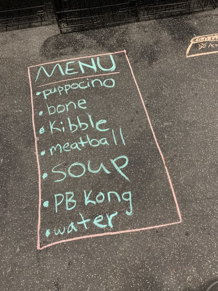 When I arrived each shift, I would grab a slip lead, walkie, and citronella spray. I would then set up my room for the day by filling water bowls, setting up play equipment, and reading the whiteboard/setting up the whiteboard with the names, gender, breed, collar color, and description of each dog there. I was responsible for watching the room and assuring everyone was playing nicely and having fun. We were allowed to play music/whatever we wanted on the TV, so long as we were focused on our room. The TV was mostly used as a computer that showed all dogs checked in and what room they were in. Throughout the shift the dogs could be taken outside into a shared play area for a little break or some fun water time if we were able to set up the pool or sprinklers. We were also allowed (and encouraged) to use chalk on the rubber flooring. It could be used as an activity for the pups or sometimes it looked cute on the pet parent camera.