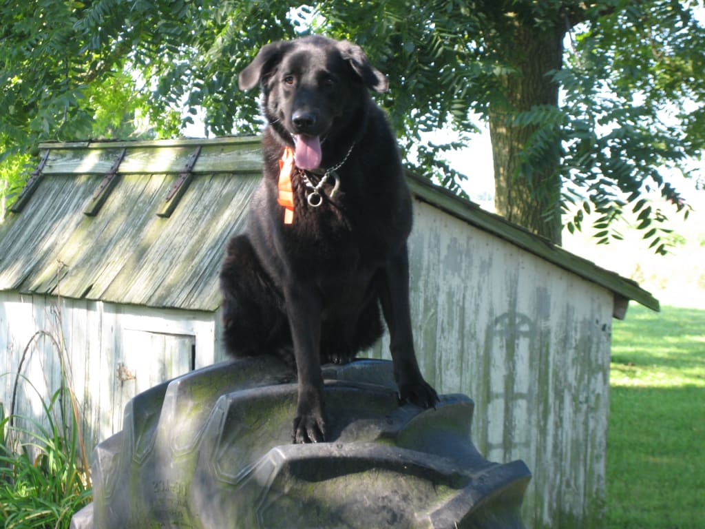 Mooch came to us from a rather carefree hobo-style of life. He had shown up in the little town near us and started his rounds as if he knew the place. He would begin his day at the hardware store, all 60 pounds of his big brown eyes and black Labrador smile convincing the owners to share their lunches. From there, he made his way to the grain elevator, the dairy freeze, and the furniture store where he made more friends. At the local grocer, it was guaranteed that he would arrive around the time that they were tossing out meat scraps. He was an extremely social animal; in between snacks with his human friends, he would get together with his dog friends. Due to his party-animal mentality, the town was developing a running dog pack, and concerned citizens felt like something unfortunate was just over the rise. So one day, Dad invited Mooch to come home with us in the pick-up truck. He described our acres of running space, the expected chores that went with being a farm dog, and kids to play with; Mooch accepted.