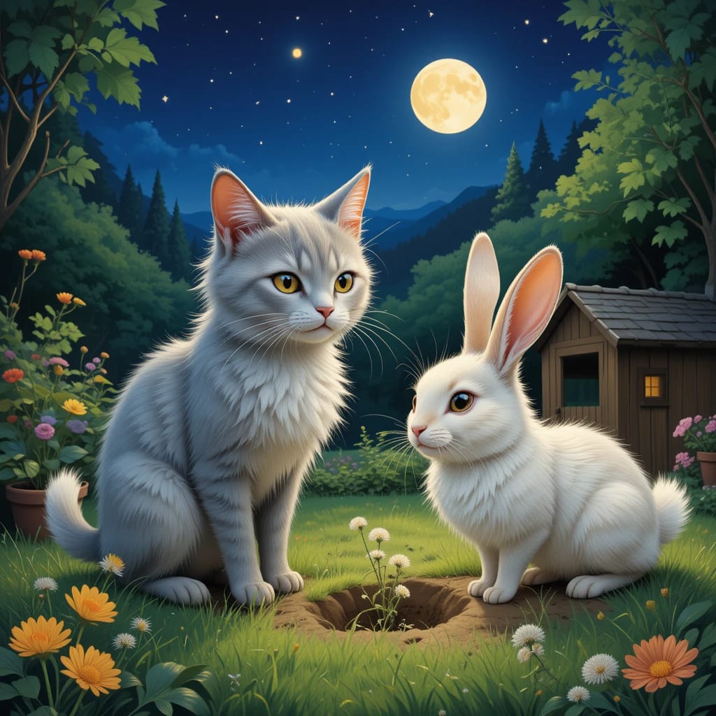 Once upon a time, in the quiet village of Meadowbrook, nestled between rolling hills and flowering meadows, lived two unlikely companions: a sleek, clever cat named Whiskers and a fluffy, wide-eyed rabbit named Thump. They weren’t always friends, of course. Cats and rabbits don’t usually mix, but this pair had a story that proved otherwise.
