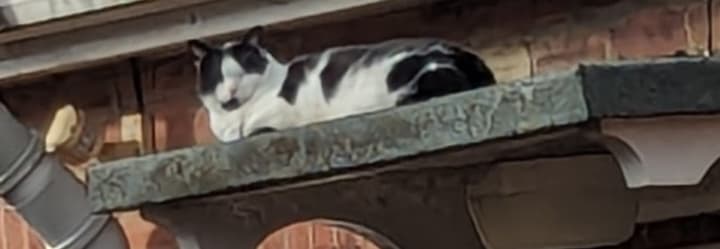 This one glared at me from a porch roof, proving that cats can lie about wherever they want. They are lords and ladies of these Novocastrian neighbourhoods.