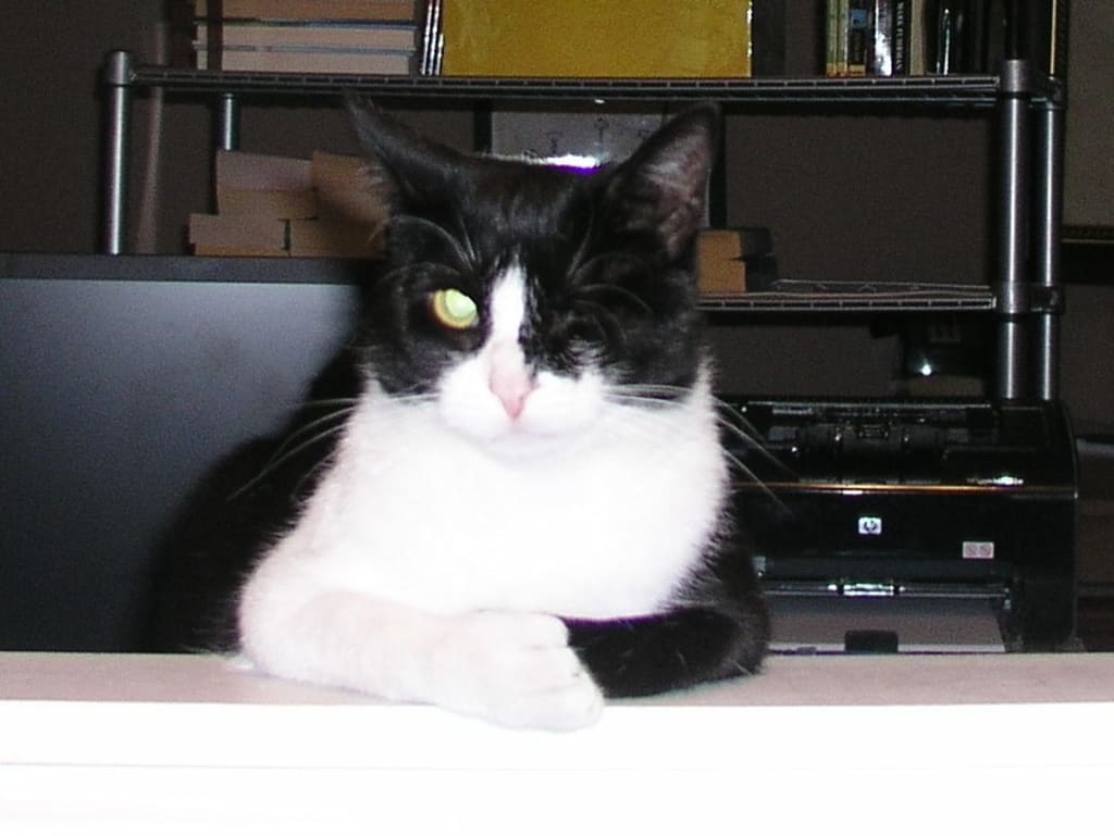 Zoe is a sweet black and white tuxedo cat with extra toes referred to as a polydactyl cat. She has mitten paws. I love her feet and find them fascinating. When I turn one of her front paws over and look at it upside down, it reminds me of a pitcher's mitt.