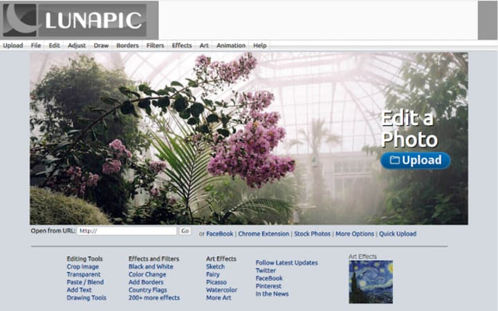 LunaPic is a great AI-powered free online photo editor that also has its own extension. To use LunaPic, you simply upload an image, choose one of several art effects, and wait for the AI to do its job. A number of filters and the lighting system are available. If you look for preparing the videos and GIFs, LunaPic is the best solution.