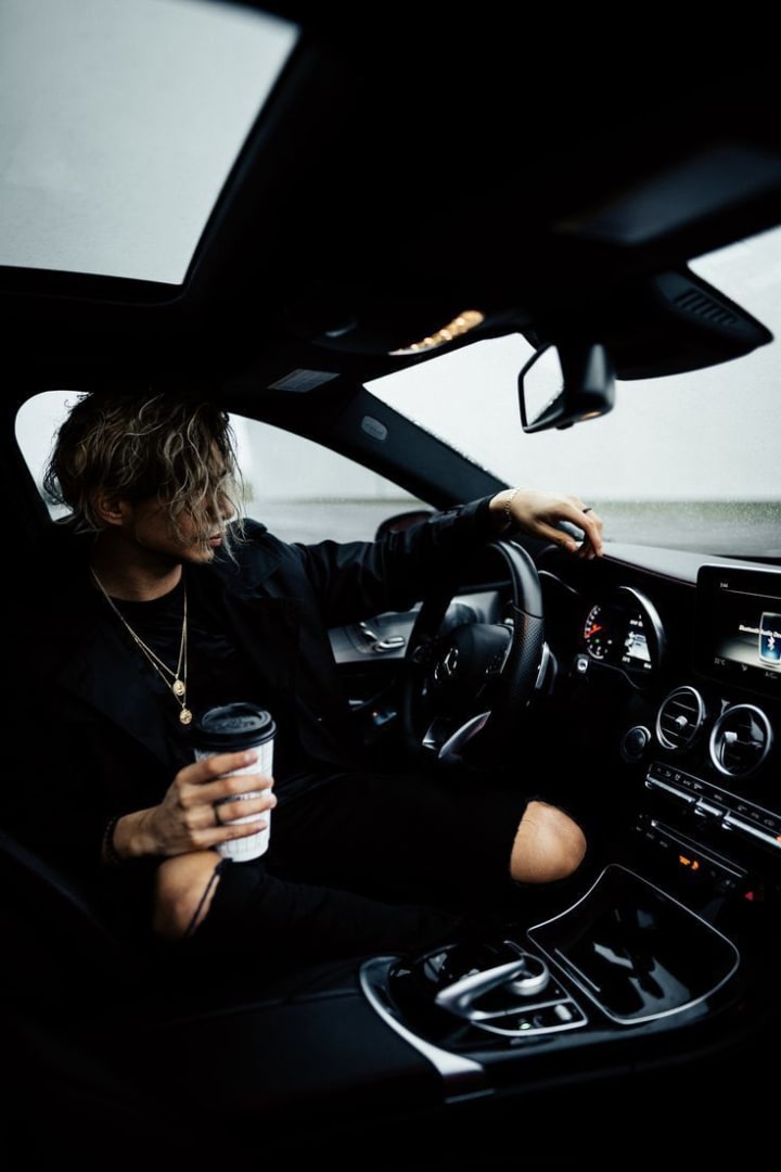 This relaxing position is ideal for a laid-back atmosphere. Sit in the car, one arm out the window, and put on some sunglasses for a stylish and mysterious appearance.