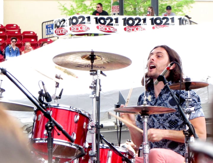 Unfortunately, we arrived right as The Unlikely Candidates were finishing up their set. But I was still able to capture some amazing moments. The photo to the left was my favorite from the set. Everything from the motion captured to the framing. Sure it is by no means perfect, but looking back it was really impactful. Editing this photo I was really in love with using the blur tool. For some reason, I believed that blurring the image background and foreground would fix all the other technical issues with the photo. Can't blame a girl for trying. Overall, this photo was inflectional with inspiring me to continue concert photography and see what other great photos I could get during the day.