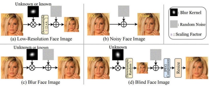 Face images in real-world scenarios undergo degradation during imaging and transmission due to the complex environment. Such degradation primarily stems from the limitations of physical imaging equipment and external imaging conditions. Let's outline the key factors that contribute to image degradation: