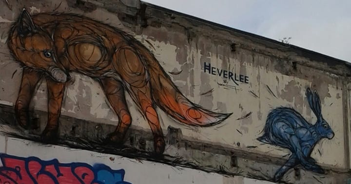 This mural and piece of street art advertises heverlee beer and what I thought it meant was chasing the hair of the dog, which in Northern Ireland means going for an early morning drink after a heavy nights drinking the night before, but once more this mural and piece of street art is a bit of a mystery to me.