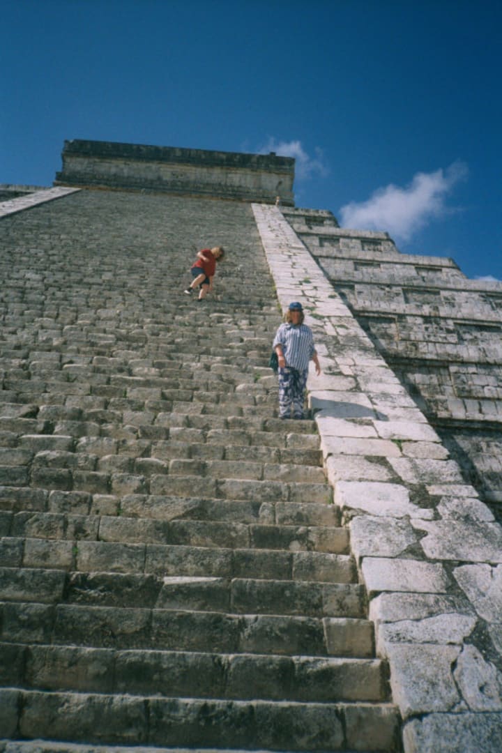 This is a picture converted from film to digital featuring Fiona on Chichen Itza in Mexico. I think that soon after they stopped people from going up there. That was over twenty years ago.