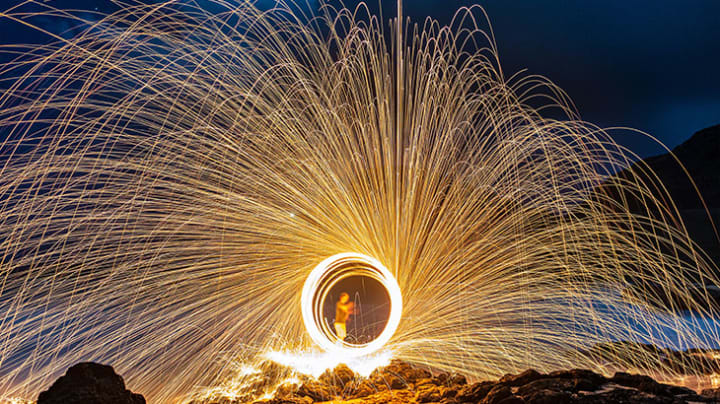 Light leaks from the camera’s imperfections or from the sun during golden hours, and light flares add a ton of visual interest to images. You can bring your own flare in-camera to create interest. An interesting technique to add some visual flare is the “ring of fire.” For this, use a short piece of copper or bronze tube to make a highlight reflection.