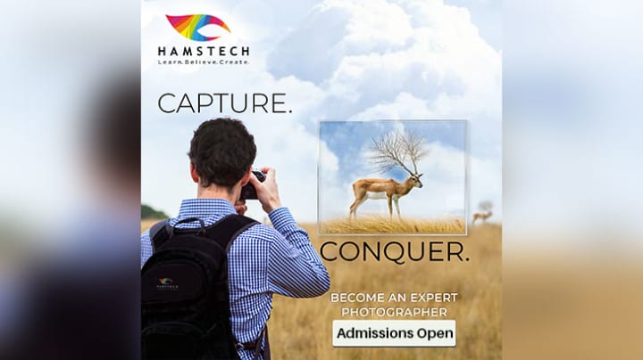Don’t delay! Admissions are open! Enrol in a Photography Course at Hamstech. Check out the Hamstech app and get the course details and information about the curriculum and mentors. Download now!