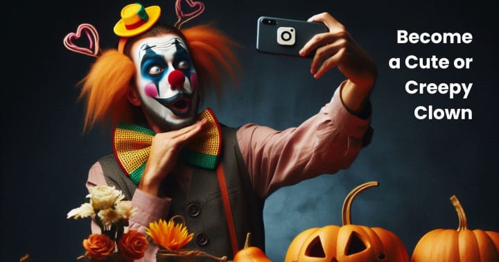 PhotoCut Tip: Edit your clown makeup photos by using background removal, adding a dark circus theme, or experimenting with color filters.