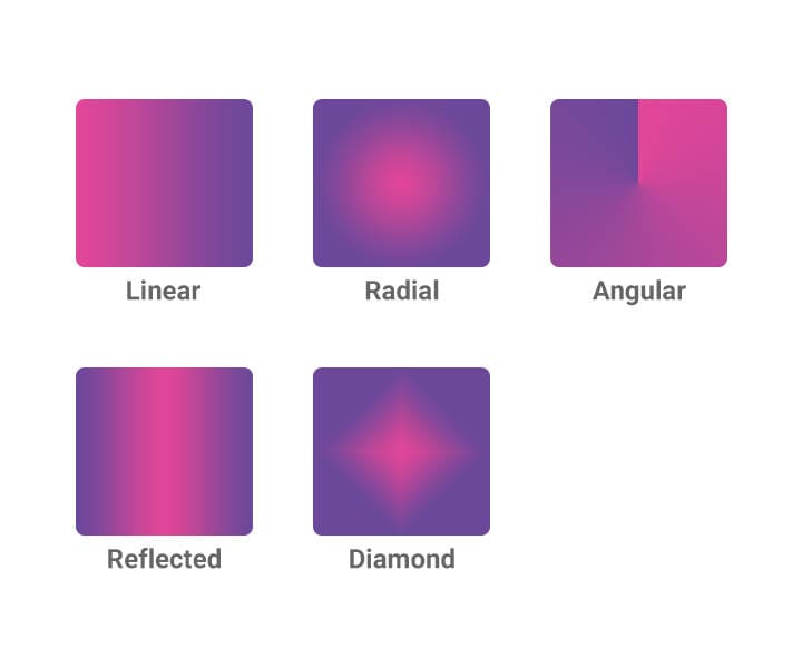 Reflected: The same linear gradient gets mirrored on either side of the starting point.