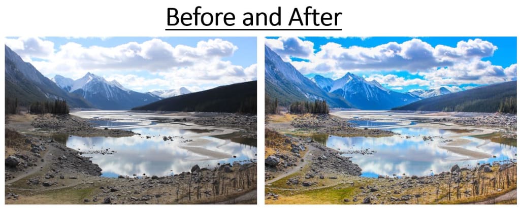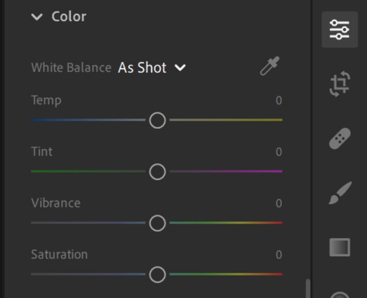 Under Color, I use vibrance and saturation. Saturation affects the intensity of each color in the image, whereas vibrance affects parts of the photo that aren't that colorful . Make sure not to overdo either one, the goal is to make the image look as if you saw it with your eyes and not the dullness the camera captures since it wasn't 'calibrated'.