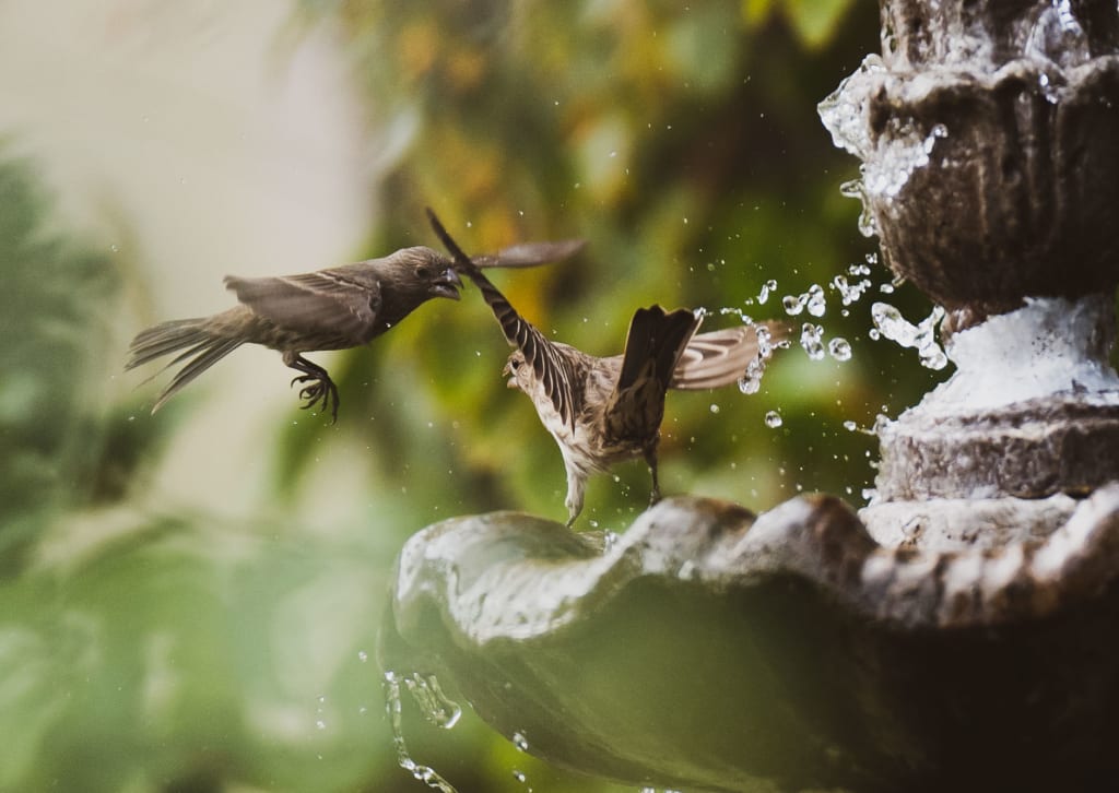 I go on a walk every morning. Many of these walks have been spent with me looking down at my phone trying to catch up on work emails or browsing social media. I never seem to expect much out of them, except burning a few extra calories throughout my day. But this day changed it all for me. It was late March, beautiful weather with the Sun welcoming spring after the February rains. I took my camera out, excited to have finally gotten the lens I spent months raising the funds for. My lens allowed me to zoom a little further than my eyes could; I was ready to discover a new world I had overlooked all along. The first few minutes were a little disheartening as I thought to myself "what am I even supposed to capture in such a plain neighborhood? Photographers travel to extreme lengths to capture remarkable photos and all I have is a few trees, some streetlights, and birds that I hear but can't even reach." I finally caught a squirrel on sight, it almost seemed as it was posing for me with a nut in its mouth. I pointed my camera as fast as I could and took the shot! To my surprise, the squirrel did not even flinch. Not sure if it was his way of trying to camouflage and avoid my presence or if he really enjoyed the attention? Excited about the photo I captured of his cute little face, I continued my walk opening my eyes more to what was around. I stumbled across this water fountain; it was empty. As I was looking around to capture something a bit more exciting, I noticed birds gravitating towards it. There were birds chirping at each other, taking turns to bathe, arguing, loving, and all sorts of endless interactions. I took many photos of the scene, so excited to be able to observe them closely. My favorite was this photo above. It really captured the hustle and bustle of a bird's world, one that we blindly walk by every day. I hope it shows us that there is so much inspiration even within our daily routine. I hope it inspires others to put their phone down, look up, and take a deep breath. I hope it allows us to acknowledge that even the little things in life can make the biggest difference. I do wish I could travel more and go to extremes to capture epic scenes. And I do hope to inspire those who want to do the same, or even go out and explore for their own. But there is so much the world has to offer within our everyday lives, and I realize that it is ok to start with the smaller things. Sometimes jumping to greater lengths makes you forget the beauty that lies within the start of the process. I know I am going off topic and this is only a photo of two birds bathing, but it’s a photo that helped me realize that there is so much more to life than just fame and success. Sometimes the beauty lies in our failures. Sometimes it lies in the slow and steady start filled with mistakes or repetitive days of trial and error. It is these days that we should cherish as our experienced self in the future will be composed of them. Every little thing we do now will reflect on who we are in the future. There are no shortcuts to success, as success should develop through days of gratitude, accomplishments, failures, excitement and so much more. And why would anyone try to avoid the beauty that comes with the process. So, I’ll leave you to that. I hope this photo reminds you of the endless possibilities and encourages you to be the creative you are.