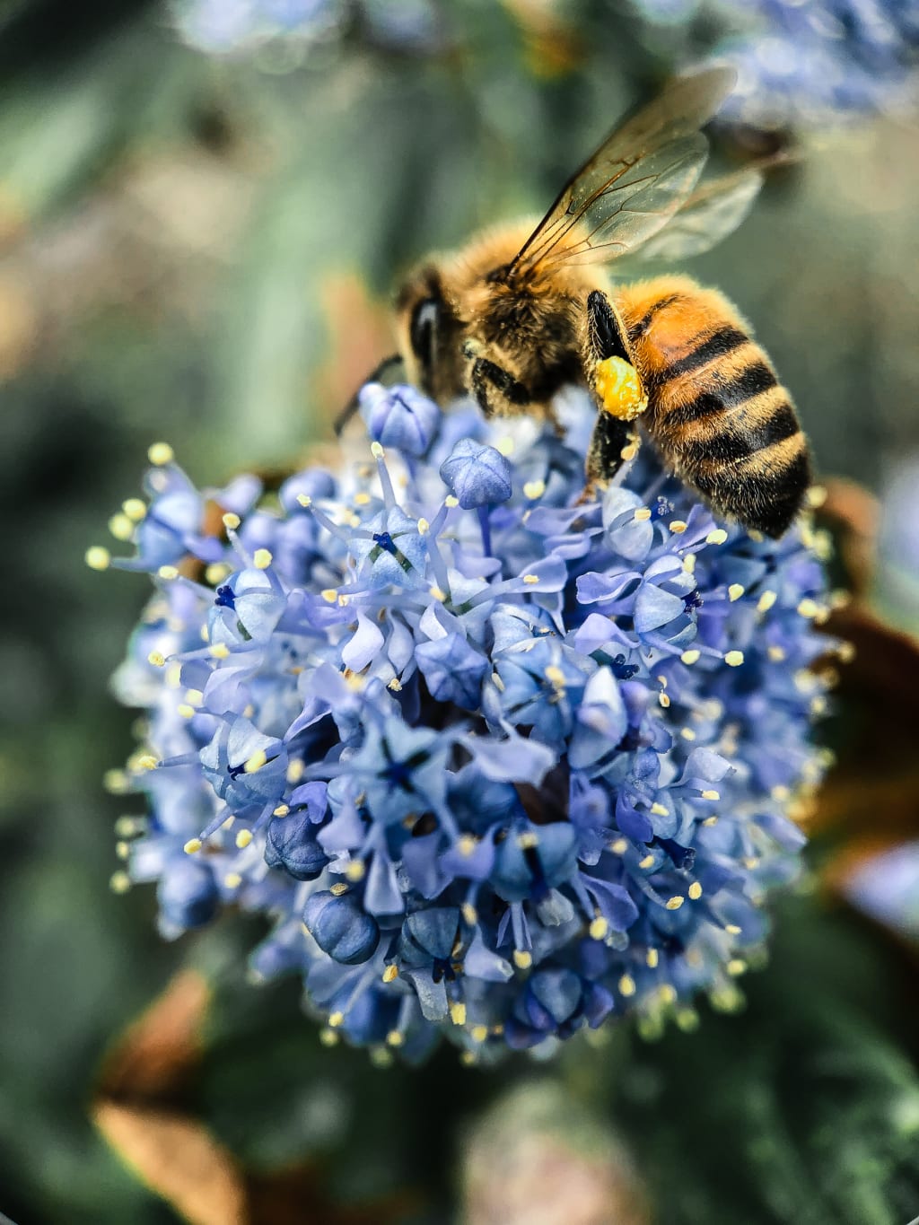 I doubt you pictured pollen clinging to the leg of a worker bee.