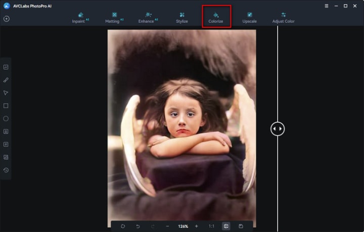 If you want to color the old black and white photos, just select Colorize in the upper right corner of the program and click Apply. Then you can compare the difference between black and white and color.