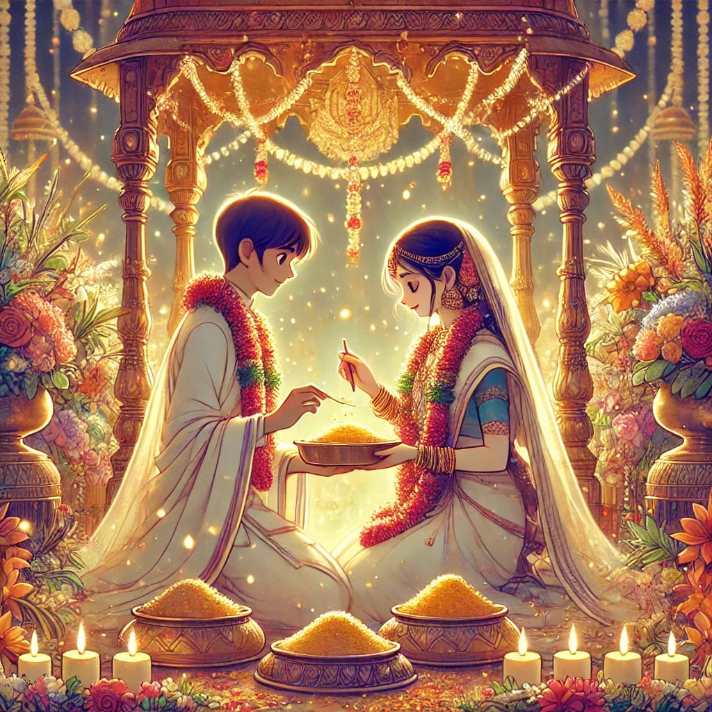 The couple is seated on a decorated swing and rocked gently, signifying the harmonious balance of their marriage. Family members sing traditional songs as part of this ritual.
