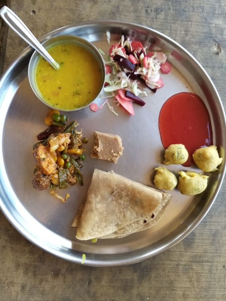 Back we came back to the tent and then walking was so tired and hungry so after eating curry and kheechadi dabai, I sat down on the bench again and watched the immense beauty of nature in peace.