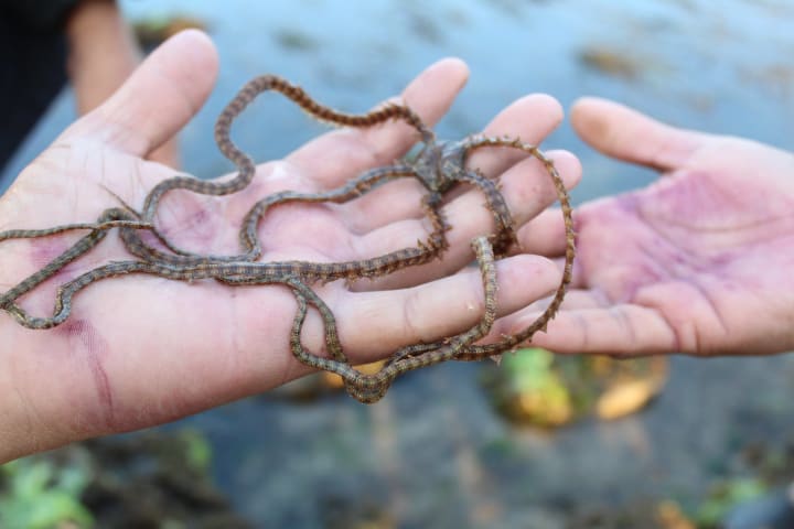 Gradually we realized a new sea of life that we had never seen before. We saw many different types of coral reefs, different species of crabs, different types of marine algee, different types of living shells, sea slug, corals, mo that we saw in the bottom of the sea for about 3 hours. Chali got to know and learn a lot by watching this creature. And I also experienced the sand dunes in which it was difficult to walk.