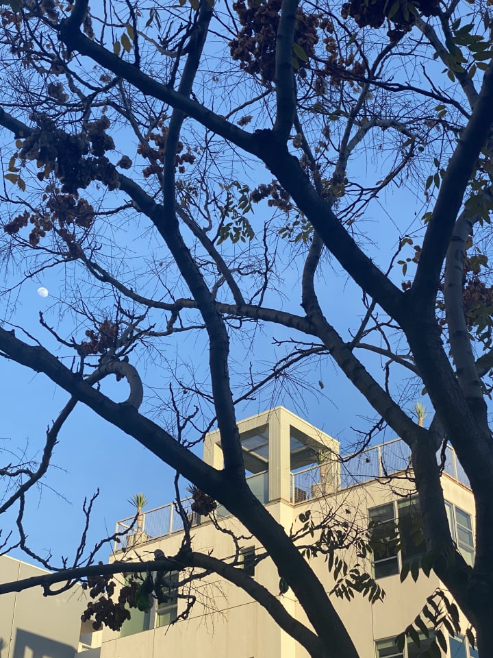 Photo number one stuck with me the most. I love the way the moon was suspended over the apartment in a sea of blue. I was entranced by the blue, almost as if I was getting sucked into it.