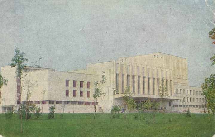 Soviet architecture in the 1970s–1980s shifted toward standardized mass housing and austere modernist public buildings, with hints of brutalist and expressionist styles appearing in high-profile or symbolic structures. It reflected the dual need to be economically efficient and ideologically monumental.