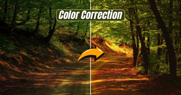 Color correction adjusts exposure, contrast, brightness, and saturation to attain an overall balanced and pleasant view of the image. It heavily features product photography, social media images, and professional prints.