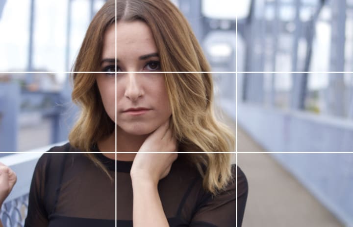 Each line represents where the division of a third would be and where they intersect are the key places to have your focal points. Depending on what you have in your frame, the subject could be “placed on a third” or “placed on an intersecting third”. For example, in portrait photography, I tend to aim for making the eyes as sharp and in focus as possible. In the photo above, placing the outside eye on the intersecting third creates a composition that is stable and draws the viewers eye in, around, and back to the subject like it should.
