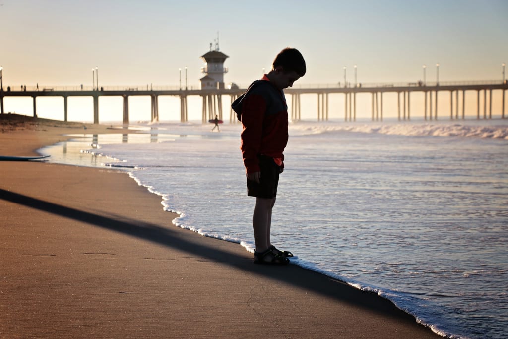 This photo was captured in a series of about 75 shots. The pier in the background with the sunrise and surfers in and out of the water afforded me only about 15-20 minutes to capture this short series of portraits to tell a story of my son's first time ever seeing the ocean. The contrast was simply amazing. There is very minimal photo editing that went with this session is is a raw capture of light.