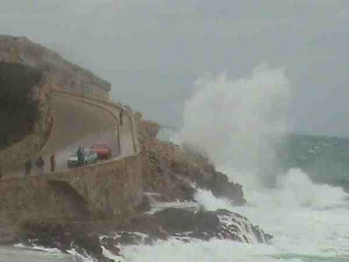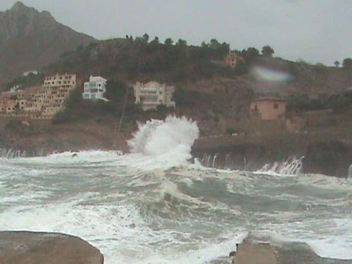As you can see from the photograph above, I wasn't the only one attracted to the stormy days and sea in Cala San Vicente, Mallorca, Spain, but once more look at the size of the people and the cars at the bay wall and then the incoming wave which has just impacted on the rocky shore. The size of the wave is just mind boggling to say the least.