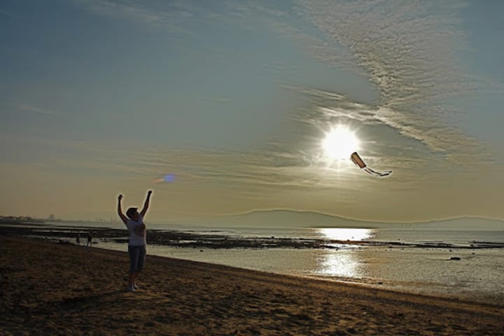 I also love how the Sun caresses the kite and also how is streaks across the lough and wet beach.