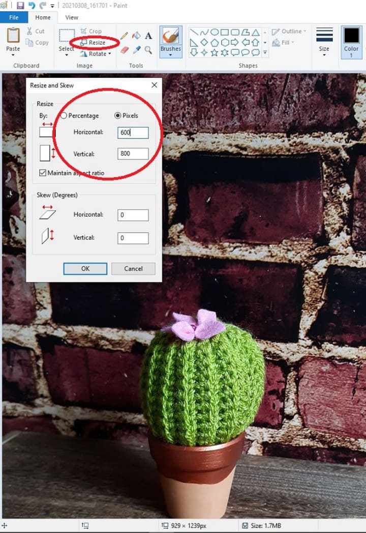 I use Paint (yes, the Microsoft Paint that comes with every Windows computer and is never used by the pros) for two things: cropping and resizing. Different selling platforms have different rules for photo sizing and I find that I often need to make my photos smaller. Paint makes it easy and fast. Do make sure that the Maintain aspect ratio box is checked or you'll end up with a distorted photo.