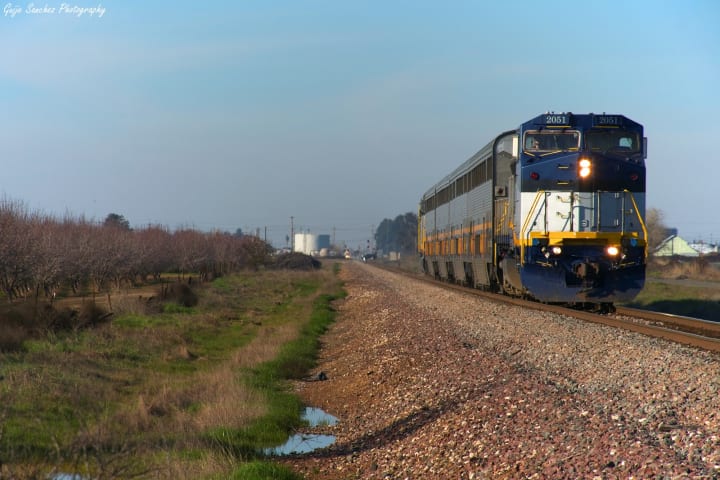 Amtrak California 2051 taking up the back end of the San Joaquin entering Modesto