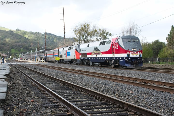 Amtrak 42 and Amtrak 156 take up the lead of the California Zephyr stopped in Martinez