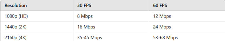 1. Recommended Video Resolutions