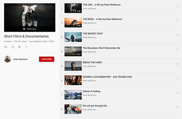 Beyond a place to showcase his inspirational short films and documentaries, his channel offers helpful tutorials and other engaging playlists such as Two Minute Tuesday, Filmmaker Reacts, and my personal favourite, THE VLOG—and I'll tell you why.