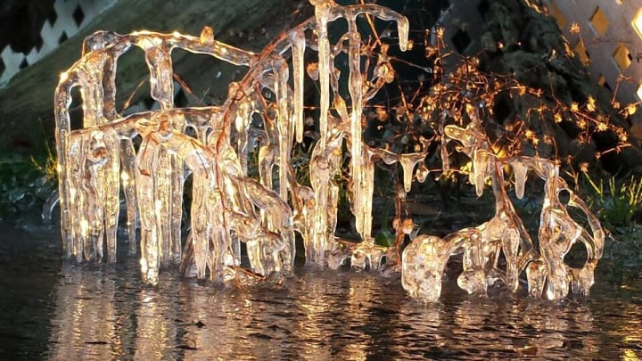 The photo above was taken in my grandparent's back yard during winter break. For once, everything had frozen over and this little twig had found itself entangled in ice. When I look at it, I see a beautiful tree with leaves made of ice and a glow that comes from the branches itself. Its almost like a fairy tale.