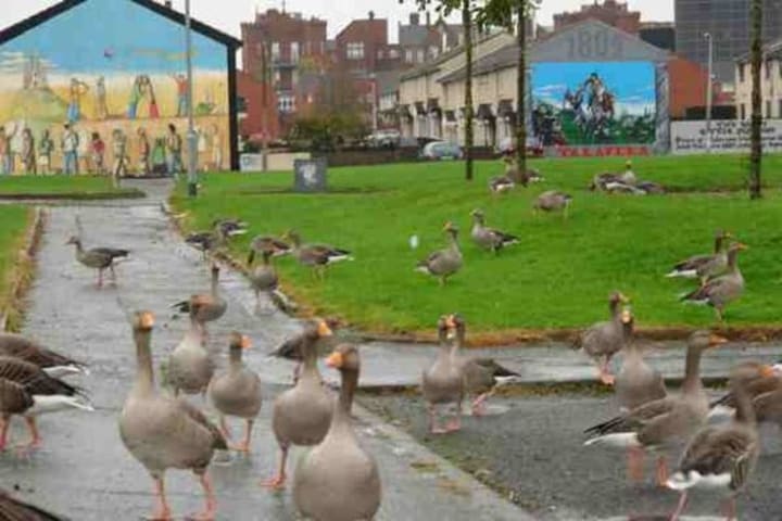 It is not as if the greylag geese just turned up on the Lower Shankill Estate, Belfast, Northern Ireland just yesterday.