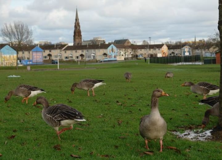The geese do not roost in the Shankill Estate at night, they fly off to Antrim Road Water Works, and other parts of North Belfast, but every morning they fly into the Shankill Estate in formation and stay all day long interacting with the locals who are now used to them, and the tourists who are totally stunned by such a sight right in the heart of a Belfast Estate, so you can be sure millions have taken photographs of the amazing sight of the greylag geese in a Belfast Estate, and you can be even more sure that those photographs have traveled the earth through social media sites for others to see such a sight, and now I share them with you here on Vocal.